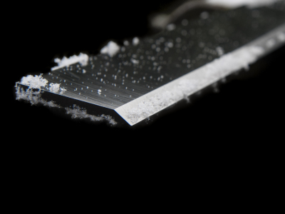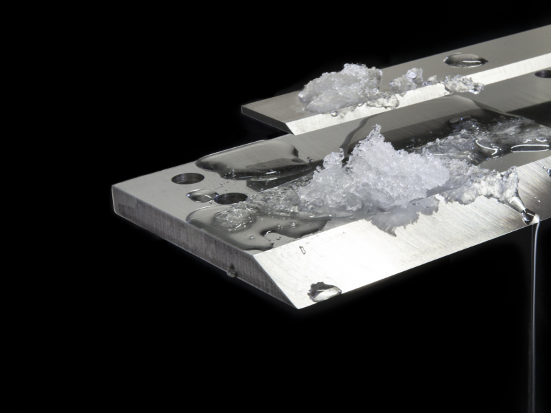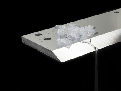 • Acier massif : Couteaux en acier à outils trempé, de 3,5 à 3,8 mm d’épaisseur. Plus faciles à remplacer sur la machine et à manipuler grâce à leur poids réduit par rapport aux couteaux classiques de raclage de glace.